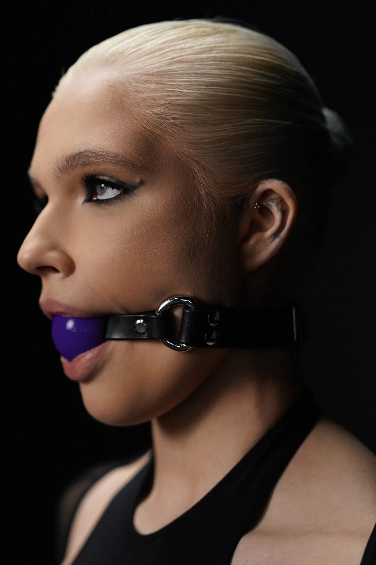 Atténue la parole tout en favorisant subtilement la salivation, renforçant le sentiment d’impuissance et de soumission. Difficile à recracher seul, pour un maintien stable et fiable. - Bracelets en cuir italien double face :