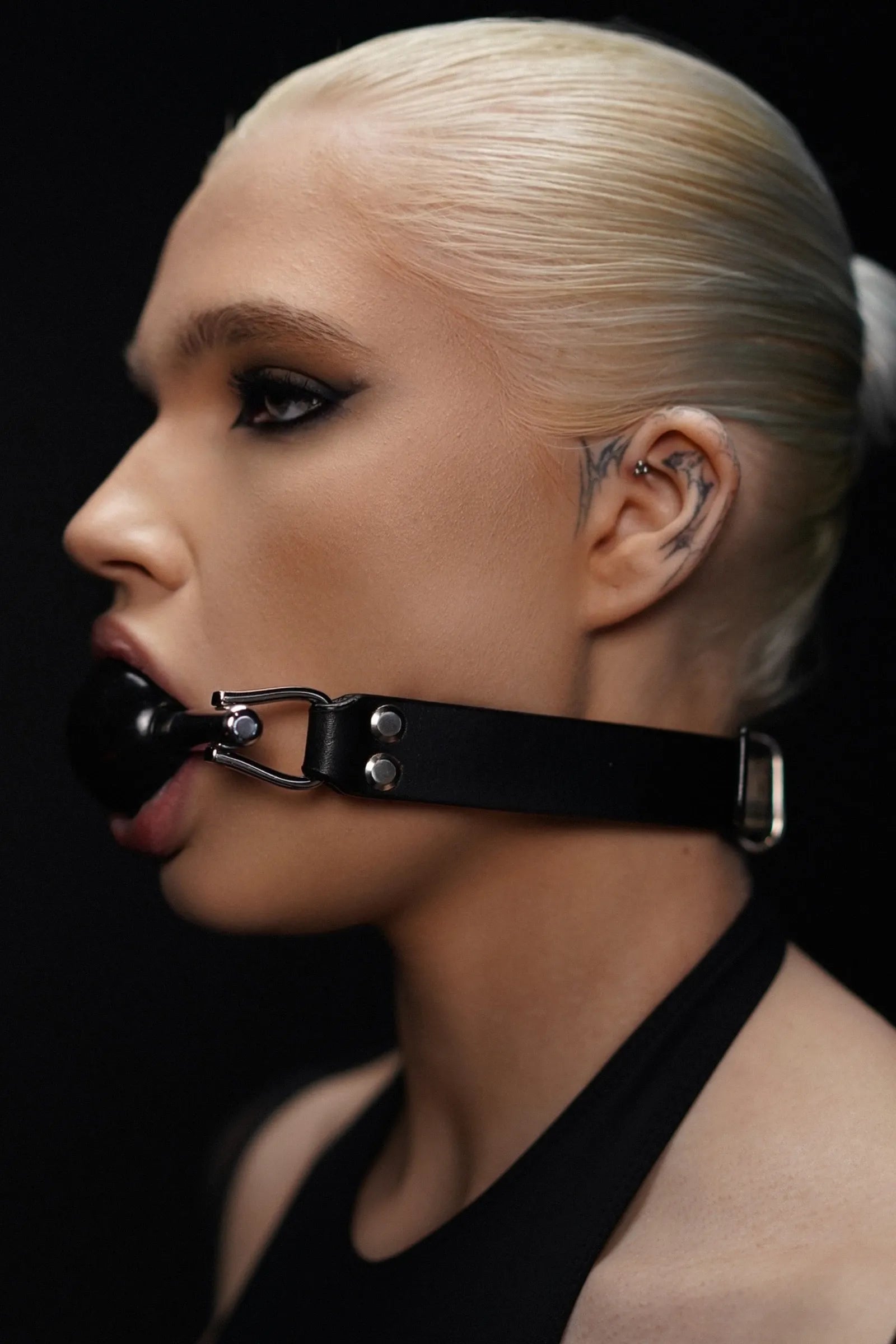 Hesychia Ferumbound est l’évolution avancée de l’Hesychia classique, intégrant une barre en acier de 10 mm qui augmente considérablement sa rigidité et sa stabilité. Bien qu’il conserve l’apparence d’un bâillon traditionnel, sa conception anatomique interne remplit parfaitement la cavité buccale, bloquant efficacement toute parole. L’élément métallique assure une stabilité supérieure, tandis que les sangles en cuir garantissent une fixation sûre, même lors de mouvements intenses ou d’activités prolongées.