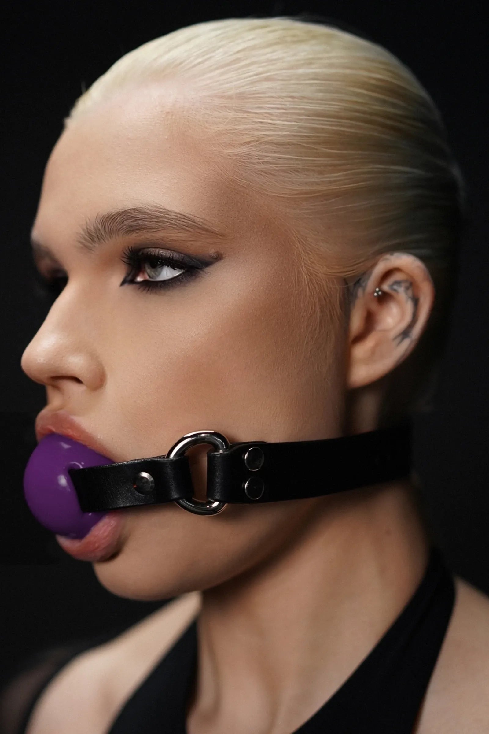 Hesychia n’est pas un simple bâillon boule classique : c’est un dispositif innovant dans lequel chaque détail est pensé avec précision. Si son apparence extérieure rappelle celle d’un bâillon boule traditionnel, sa conception anatomique interne est étudiée pour épouser et remplir avec précision chaque millimètre de la cavité buccale. Grâce à cet ajustement précis, il enveloppe fermement la langue et les tissus mous, limitant efficacement la parole et renforçant la sensation de contrôle. L’un des principaux atouts de ce modèle est qu’il maintient la bouche ouverte d’environ 2,5 cm, ce qui intensifie la perception tactile et accentue l’effet visuel et sensoriel du contrôle.